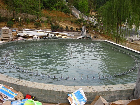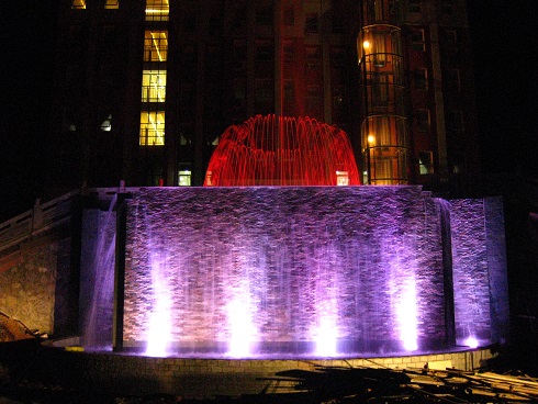 該項(xiàng)目位于畢節(jié)金沙縣冷水河生態(tài)保護(hù)區(qū)內(nèi),項(xiàng)目不大,但涵蓋了多種傳統(tǒng)水形,涌泉、內(nèi)拋、高噴和瀑布跌水等,用的LED水下七彩燈,在晚上欣賞時(shí)色彩斑斕,非常漂亮,瀑布更是氣勢(shì)雄偉。照片中有調(diào)試前、調(diào)試后和安裝過(guò)程的場(chǎng)景。